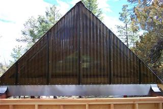 A roll-off roof type observatory housing a 16" Newtonian telescope on a German equatorial mount.